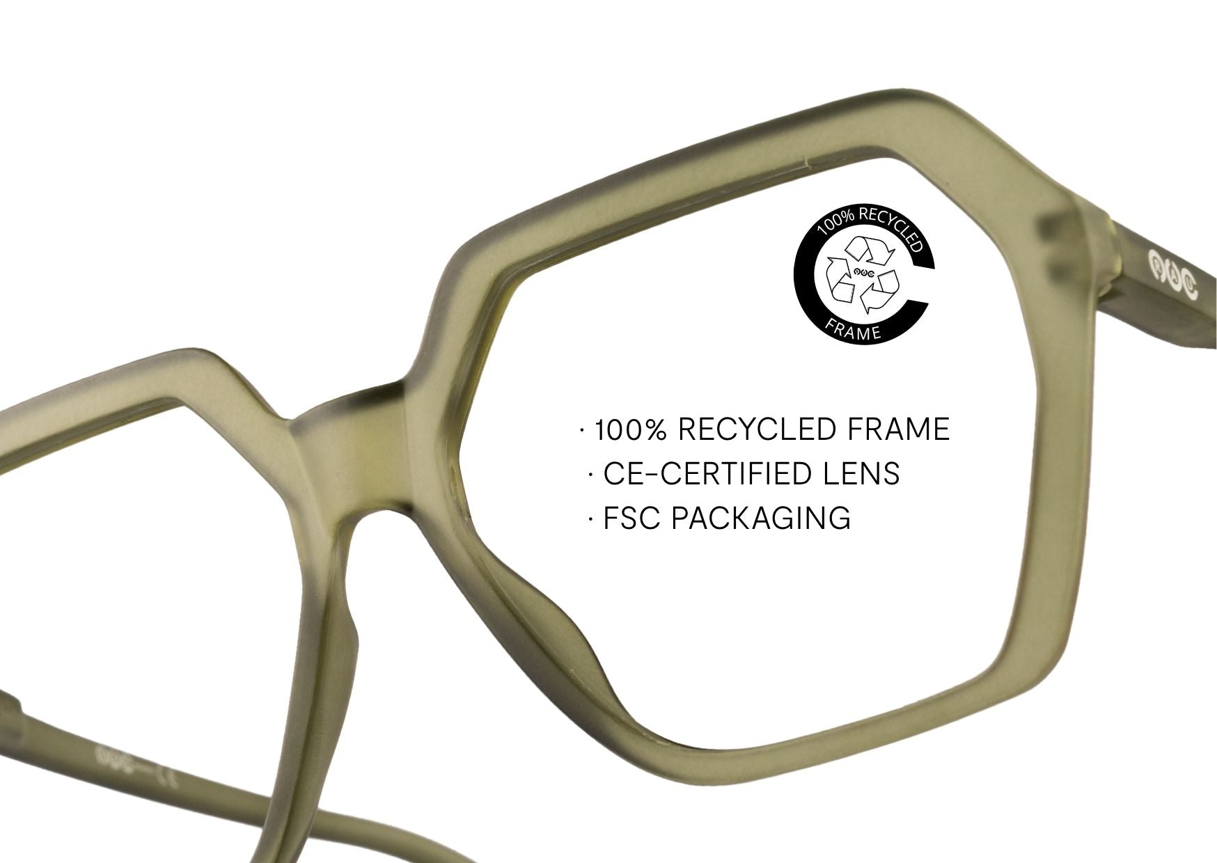 Onze frames worden gemaakt van gerecyclede materialen, onze glazen zijn CE-gecertificeerd en onze verpakkingen komen uit FSC-gekeurde bronnen. Geen grote woorden, geen groene claims. Gewoon keuzes die we kunnen bewijzen.